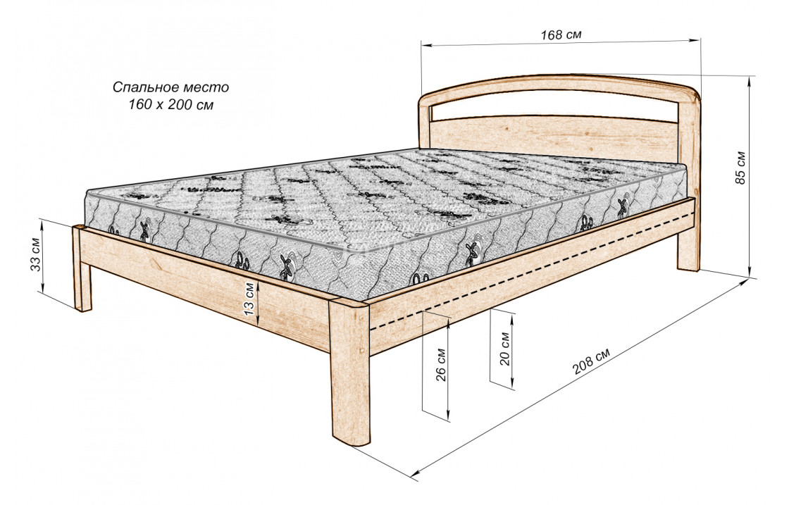 140x200 - глубина уменьшается на 100 мм = 685 мм