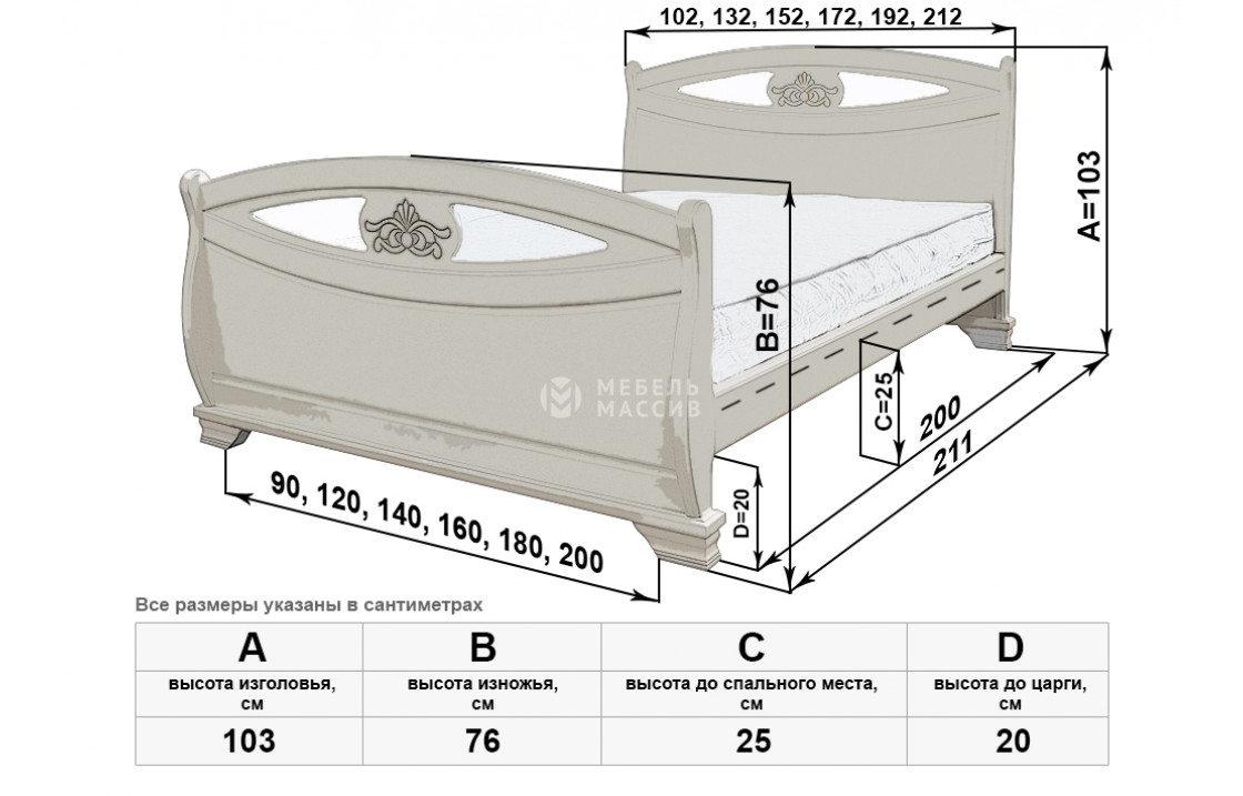 Кровать Эльза имеет две идентичные спинки, отличающиеся аккуратной изогнутостью, декоративными углублениями и цветочными узорами. Изделие, которое можно купить по специальной цене в нашем интернет-магазине, оснащено устойчивыми ножками, защищающими напольное покрытие от повреждений. Осуществляется доставка на дом по Астрахани и Астраханской области.| Размер | Цена | |