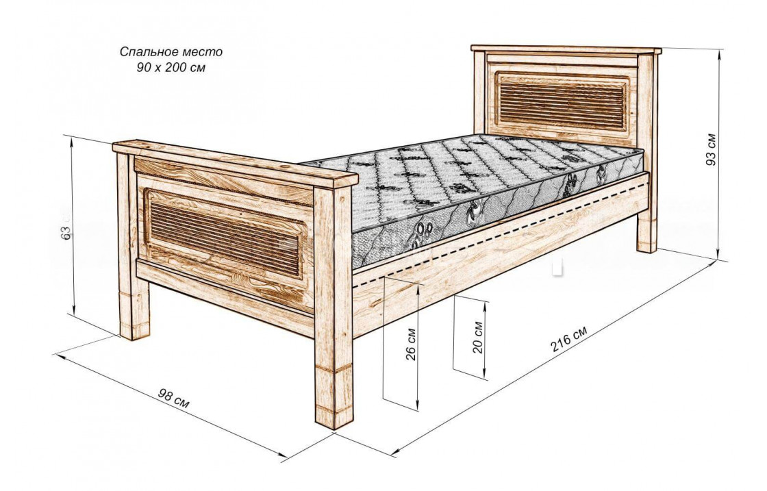 Кровать Фермер из экологически чистой натуральной древесины. изделие представлено в четырёх вариантах исполнения из древесины на выбор: сосна, берёза, бук или дуб. широкий выбор вариантов покраски позволяет органично вписаться в любой интерьер. отличается износостойкостью, прочностью, лаконичным дизайном. приобретайте изделие по выгодной цене с доставкой на дом в интернет-магазине «мебель массив». Осуществляется доставка на дом по Астрахани и Астраханской области.| Размер | Цена | |