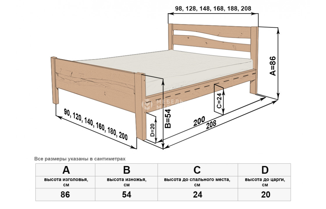 Кровать Карина-1 отличается простым лаконичным дизайном. Единственными украшениями модели служат игривые волнистые отверстия в спинках и естественный древесный рисунок. Ножки изделия, которое можно купить по демократичной цене в нашем интернет-магазине, защищают напольное покрытие от повреждений. Осуществляется доставка на дом по Астрахани и Астраханской области.| Размер | Цена | |