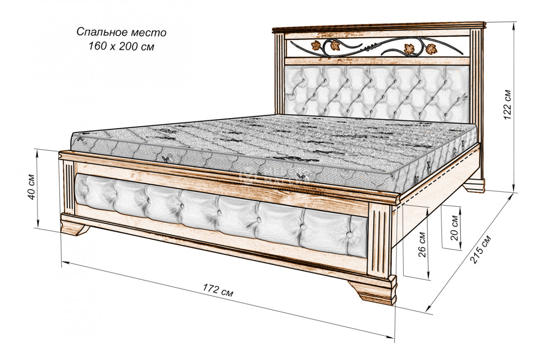 Кровать Лозанна из массива. Осуществляется доставка на дом по Астрахани и Астраханской области.| Размер | Цена | |