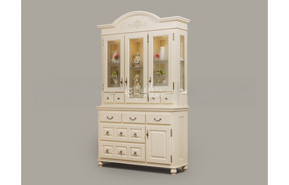Трехстворчатый сервант Ретро 26 - это функциональный предмет меблировки, который подойдет для установки как в обеденной зоне, так и в гостиной. Для его изготовления был задействован массив сосны, зарекомендовавший себя как надежный материал, способный выдерживать длительные нагрузки, без потери привлекательного внешнего вида. Модель имеет стеклянную часть с полками, а также, комодную - с множеством выдвижных ящиков разного размера и нишей за распашной дверцей. Верхнюю часть изделия дополняет фигурная надстройка, а сама конструкция устойчиво стоит на округлых ножках. Выбрать подходящую фурнитуру и нужный оттенок древесины можно в карточке товара. Доставка по Астрахани и Астраханской области.| Размер | Цена | |